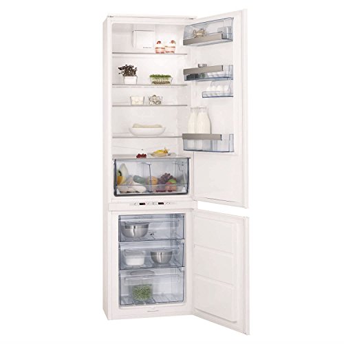 PRODUCT DESCRIPTIONS:Manufacturer: AEG Key Features Optimal storage capacity in a perfectly integrated kitchen - Thanks to its extra tall design, this MaxiLoad fridge freezer can hold 15% more than a standard built-in fridge freezer, for both optimal storage and perfect integration Keep your freezer entirely ice free - Thanks to NoFrost – the best ice-free technology available – you can be sure of a high-performing freezer that never requires defrosting Optimized storage options thanks to consistent temperature - The ProFresh system in the refrigeration compartment ensures its internal temperature and humidity is consistent. With stable conditions, you can store any item anywhere in the fridge Electronic temperature control Holiday setting - This special feature allows you to empty the refrigerator when you go away on holiday. It maintains the internal temperature of the cabinet at an economical 15ºC, preventing the formation of odours and mould in the empty fridge Child proof control panel - Ensuring appliance is not accidentally switched off Visual and accoustic high temperature alarm 230 litres gross fridge capacity 228 litres net fridge capacity Dynamic air technology - Internal fridge fan provides an even and stable temperature in the fridge. This reduces hotspots and condensation leading to food staying fresher for longer Multi-airflow cooling fan 3 Full Width + 2 Half Depth glass shelves Extra large glide-out salad drawer - The extra large salad drawers with humidity control have dividers so that fruit and vegetables can be separated. The humidity control prolongs the life of your fruit and vegetables keeping them fresher for longer Close control over storage conditions - When you alter this fridge freezer's temperature, you receive immediate feedback on the ele