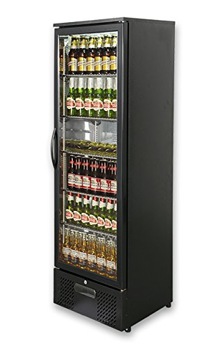 PRODUCT DESCRIPTIONS:Capital Platinum Single Door Upright Bar Chiller - Black Free 1 Year Parts & Labour Warranty Adding a touch of class to a bar or restaurant has never been easier. The Platinum upright bottle coolers are finished in black high gloss and have a mirror finish stainless steel interior - the combination results in a striking chiller that draws the customers attention. Available as either a single or double door model the Platinum ECO-COOL bottle coolers utilise chrome wire shelving, stainless steel shelf supports and high quality hinges that will stand up to the demands of a busy bar. Features Mirror finish stainless interior Fully adjustable chrome wire shelving Electronic temperature control Fan assisted cooling Automatic defrost LED lighting Wine shelf option