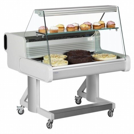 PRODUCT DESCRIPTIONS:A mobile serve over counter with a refrigerated deck and ambient shelf. Ideal for cafes and deli's. The air flow on the unit is designed so it does not need to be fan assisted and you will get even cooling over the whole deck without the problem of a fan drying out the food. An ambient shelf also gives you extra display space. The unit can also be taken off the trolley to allow to be counter mounted (please note if counter mounting you will need to cut a slot for the drip tray which is mounted in the middle at the back of the unit).