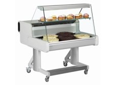 PRODUCT DESCRIPTIONS:A mobile serve over counter with a refrigerated deck and ambient shelf. Ideal for cafes and deli's. The air flow on the unit is designed so it does not need to be fan assisted and you will get even cooling over the whole deck without the problem of a fan drying out the food. An ambient shelf also gives you extra display space. The unit can also be taken off the trolley to allow to be counter mounted (please note if counter mounting you will need to cut a slot for the drip tray which is mounted in the middle at the back of the unit).