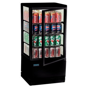 PRODUCT DESCRIPTIONS:Neat, compact counter top refrigerated display cabinet that maximises merchandising potential with four sided display. Self service door and stylish illuminated interior. Ideal for cans, bottles and sandwiches.